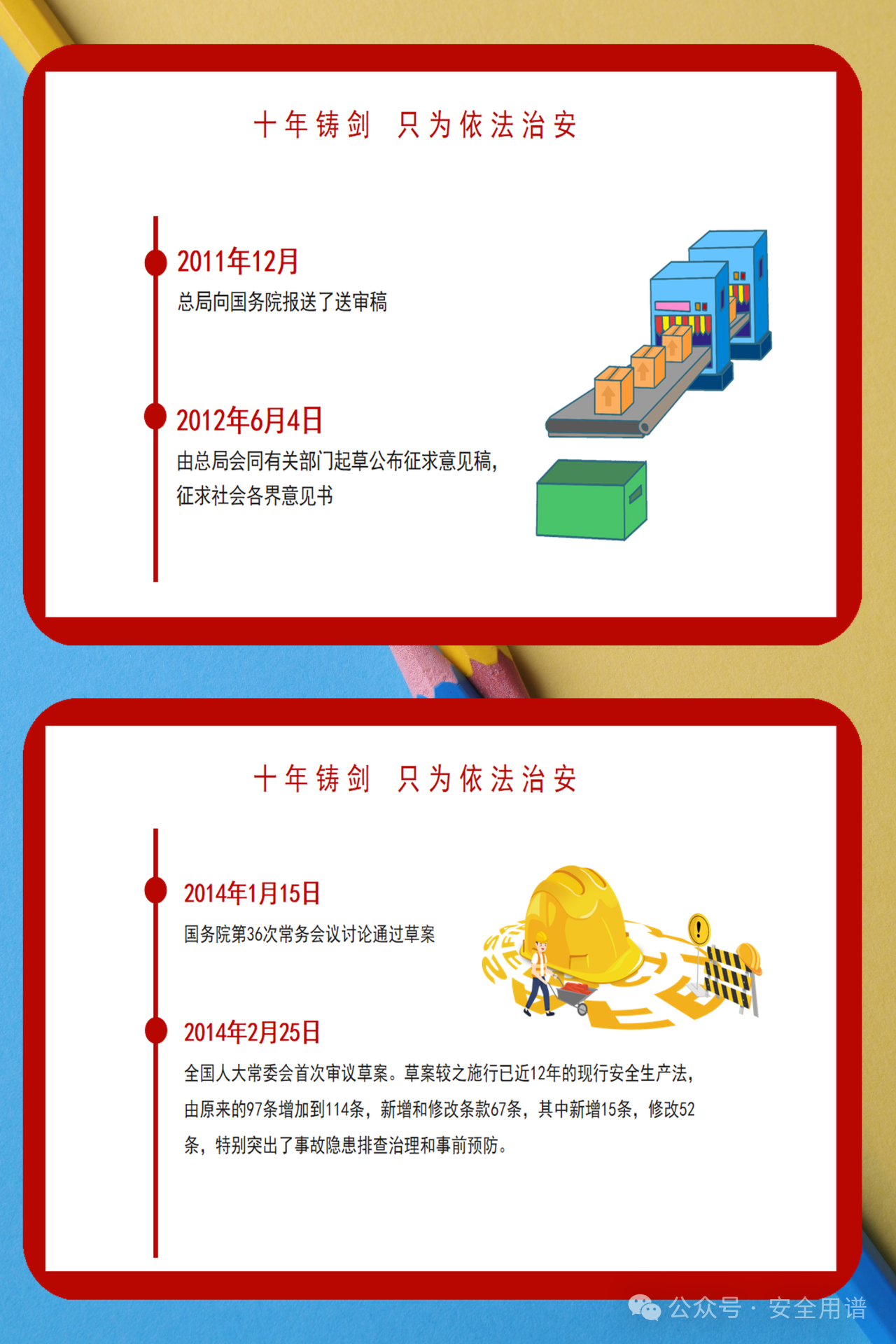2002年首次颁布,2014年第一次修订,2025年最新修订,新增条款15条,修改52条,突出“事前预防”和隐患排查治理。